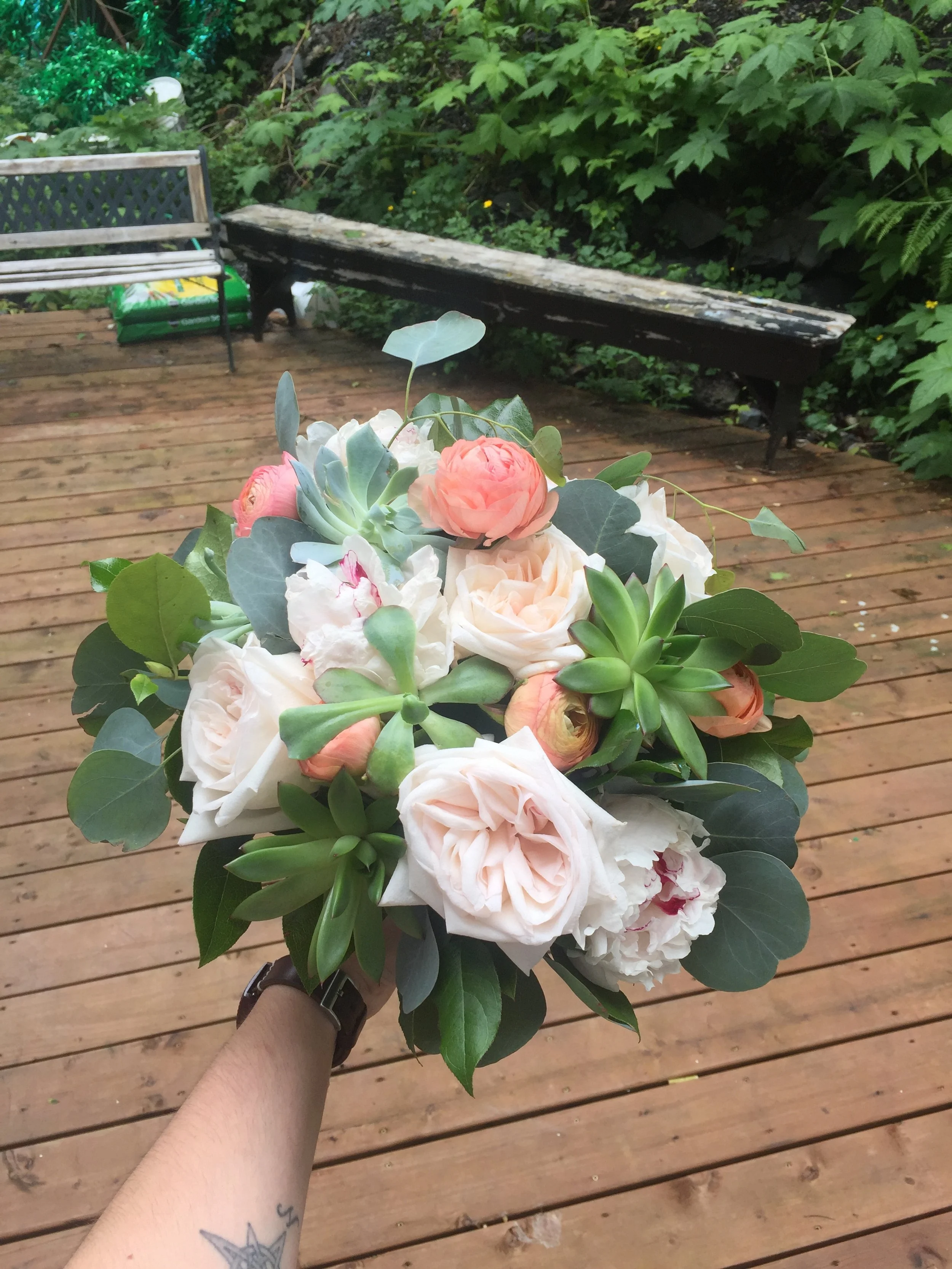 Soft hues, elegant roses and greens for your one and only. Includes a chocolate gift box.